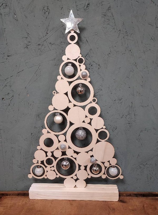 Breng een feestelijke kerstsfeer in huis met onze unieke, lasergesneden kerstboom, met vrolijk bolletjesvormen !