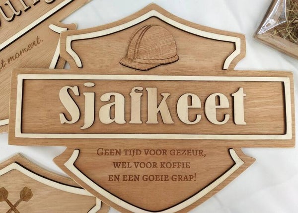 Onze tekstborden zijn verkrijgbaar in diverse leuke teksten die een uniek zijn in zijn soort. Elk bord is met de hand gemaakt en met zorg afgewerkt. Afmetingen +- L38x B30cm dikte +-4 tot 8mm